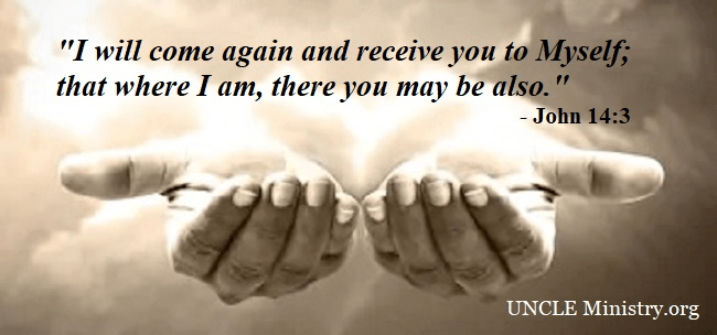 “Let not your heart be troubled; you believe in God, believe also in Me. In My Father’s house are many mansions; if it were not so, I would have told you. I go to prepare a place for you. And if I go and prepare a place for you, I will come again and receive you to Myself; that where I am, there you may be also” (John 14:1-3). Did you catch that? Jesus is coming to “receive” us to Himself!